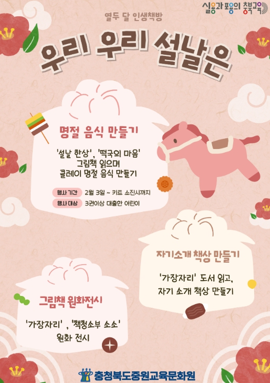 신기철 중원교육문화원장은 “도서관을 찾는 모든 이용자들이 책을 통해 우리 고유 명절의 가치를 새롭게 인식하고, 가족과 나눔, 기다림의 의미를 다시 생각해보는 소중한 기회가 되길 바란다.”라고 말했다.