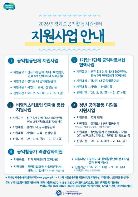 ![]() 2026년 경기도공익활동지원센터 지원사업 안내 |