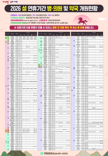김장호 구미시장은 “시민이 안전하고 건강한 설 연휴를 보낼 수 있도록 응급·소아 의료체계를 빈틈없이 가동하겠다”며 “연휴 중 필요한 의료 정보는 모바일 앱과 홈페이지를 통해 쉽고 빠르게 확인해 달라”고 말했다.