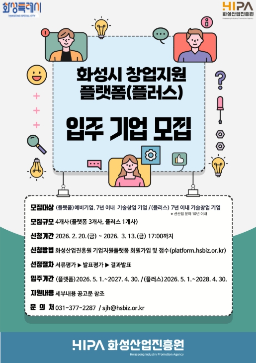 ![]() 화성산업진흥원 창업지원플랫폼 입주기업 모집 |
