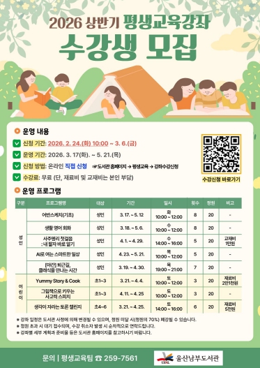 ![]() 남부도서관 상반기 평생교육 프로그램 수강자 모집 안내문 |