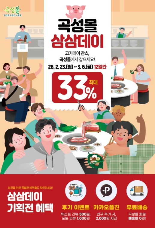 ![]() 곡성몰 삼삼데이 특별전 안내 포스터 |