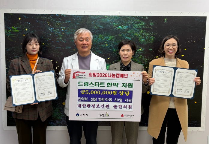 협약을 마친 ‘드림 아이 한방 케어’ 사업은 2026년 3월부터 12월까지 운영되며, 면역력 저하 또는 성장 지연이 우려되는 4~12세 드림스타트 아동 50명을 대상으로 진행될 예정이다.