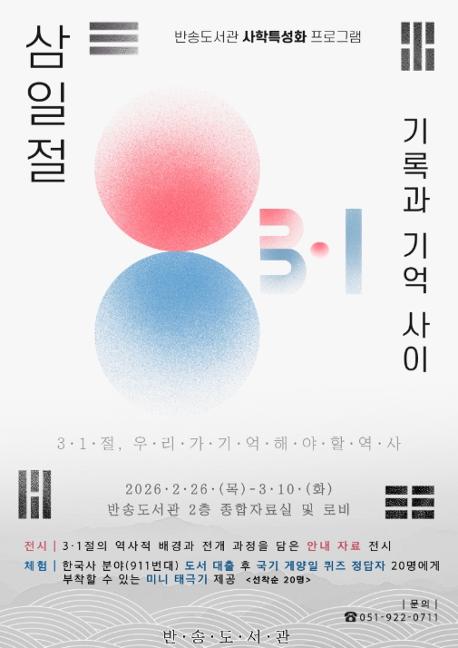 박미양 반송도서관장은 “이번 프로그램이 3·1절의 역사적 의미를 다시 한번 되새기고 우리 역사에 대한 관심과 자긍심을 높이는 계기가 되기를 바란다”고 말했다.