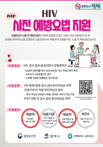 ![]() 평택시, 에이즈 바이러스 노출 전 예방요법 지원 |