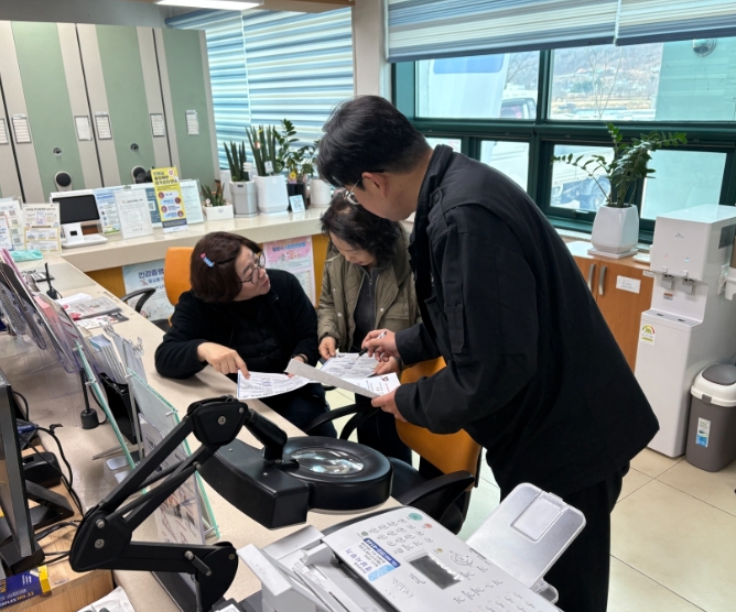 ![]() 25일 밀양시 상동면행정복지센터 직원이 방문 민원인에게 저소득층 치과 진료비 지원사업을 안내하고 있다. |