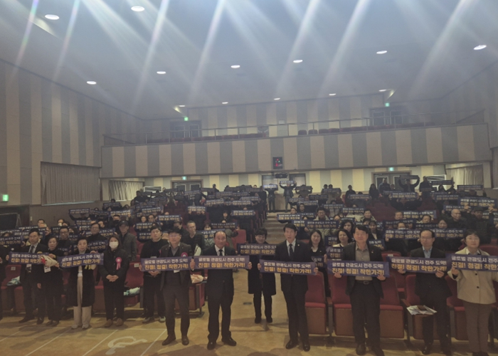 시는 25일 덕진구청 강당에서 전주지역 일반음식점 영업주 등 관계자 200여 명이 참석한 가운데 ‘외국인 관광객 유치 확대를 위한 친절·위생 서비스 실천 결의대회’를 개최했다.