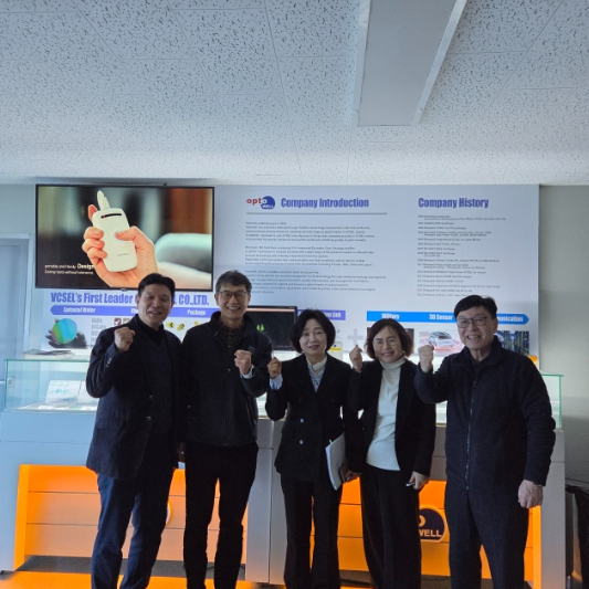 첫 번째 방문지인 ㈜옵토웰은 지난 2024년 방위사업청 주관 ‘방산혁신기업 100’(3기)에 선정된 유망기업으로 VCSEL(수직공진 표면방출 레이저), 고출력LD칩과 바를 생산할 수 있는 전문 레이저 회사로 지속적인 연구활동을 통해 국방 분야에 매진하고 있다. 이 업체는 국내 최초로 VCSEL 상용화에 성공한 독보적인 기술력을 바탕으로 지속적으로 신규 시장에 도전하고 있다.