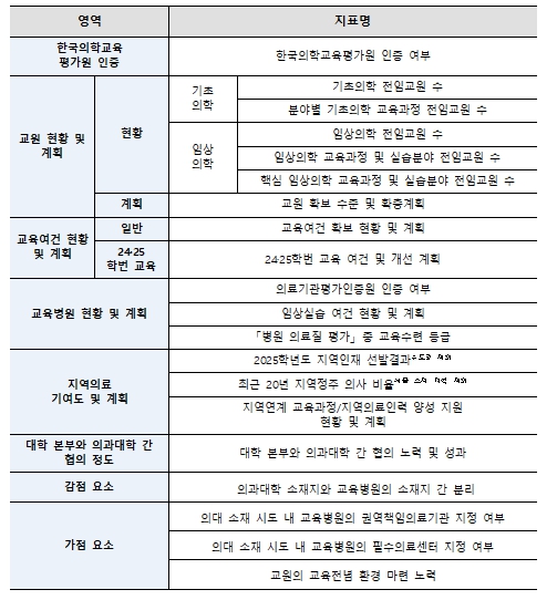 ![]() 의과대학 학생정원 조정 평가지표 |