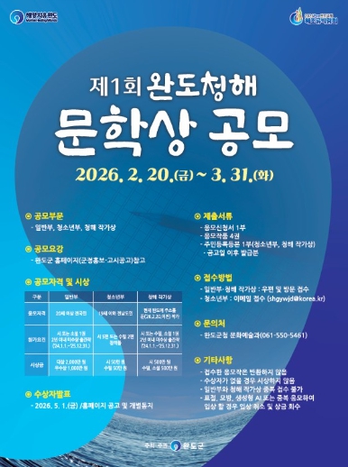 ![]() 제1회 완도 청해 문학상 공모 포스터 |