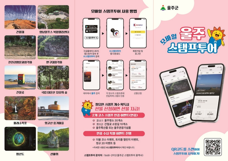 참여 희망자는 구글 플레이스토어 또는 앱스토어에서 ‘K스탬프투어’ 앱 설치 후 ‘2026년 울산광역시 울주군 스탬프투어’로 접속해 이벤트에 참여하면 된다.