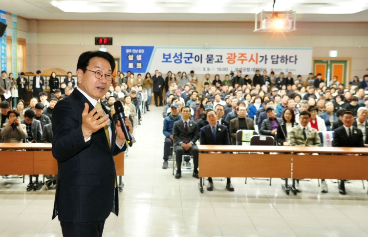 이날 행사는 광주시가 전남 시·군민과 직접 소통하기 위해 마련한 통합특별시 상생토크다. 보성 상생토크에는 강기정 광주시장과 김철우 보성군수, 김경열 보성군의회 의장을 비롯해 보성군 관계자, 보성군민 등 200여 명이 참석했다.