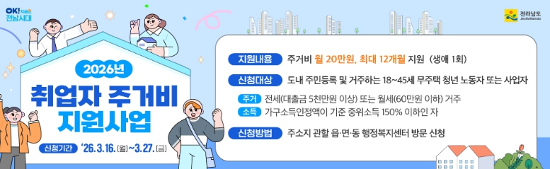 이 사업은 사회에 첫발을 내딛는 청년의 주거 안정과 경제적 자립을 지원하기 위해 전세나 월세로 거주하는 지역 청년 근로자와 사업자에게 생애 1회, 최대 12개월 동안 월 20만 원의 주거비를 지원하는 사업이다.