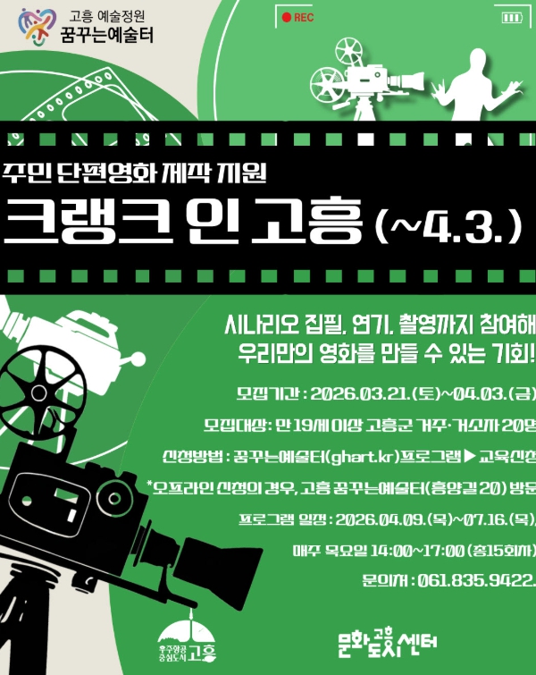 ![]() 주민이 직접 만드는 단편영화 ‘크랭크 인 고흥’ 참여자 모집 |