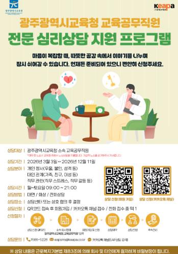 ![]() 광주광역시교육청, 교육공무직원 심리‧정서 안정 프로그램 지원 |
