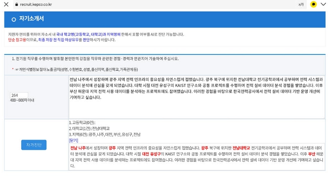 ![]() 자기소개서 AI 자가진단 화면예시 |