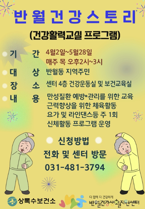 ![]() 반월건강생활지원센터가 운영하는 '반월건강스토리 건강활력교실' 디지털 홍보자료. |