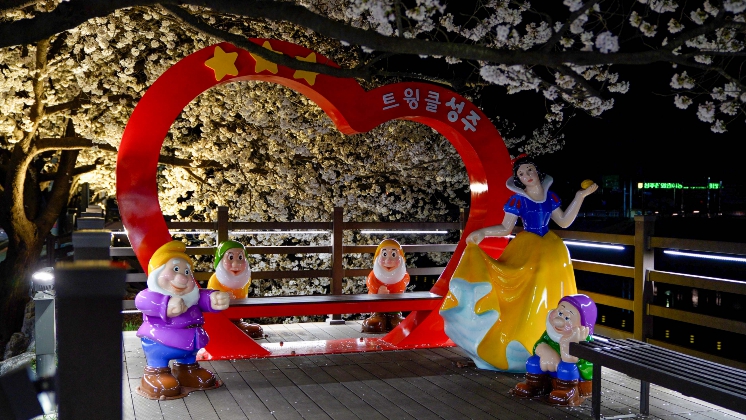 성주군 관광과장은 “벚꽃이 휘날리는 성밖숲의 밤은 그 자체로 하나의 예술 작품”이라며,“산책로에 설치된 백설공주 테마 공간과 달‧별 조형물이 전하는 동화 같은 야경 속에서 성주만의 특별한 추억을 담아 가시길 바란다”고 전했다.