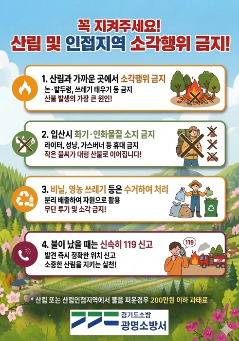![]() 광명소방서, 산림 인접지역 소각행위 금지 당부… 봄철 부주의 화재예방 홍보 강화 |