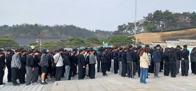 ![]() 3일 국립5‧18민주묘지에서 광산중학교 2‧3학년 학생 160여 명이 참배하고 있다. |