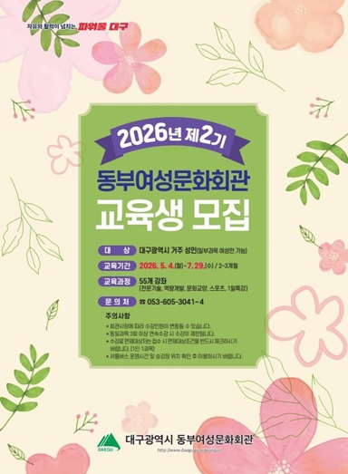 ![]() 지금이 기회! 동부여성문화회관, 2026 제2기 교육생 모집 |