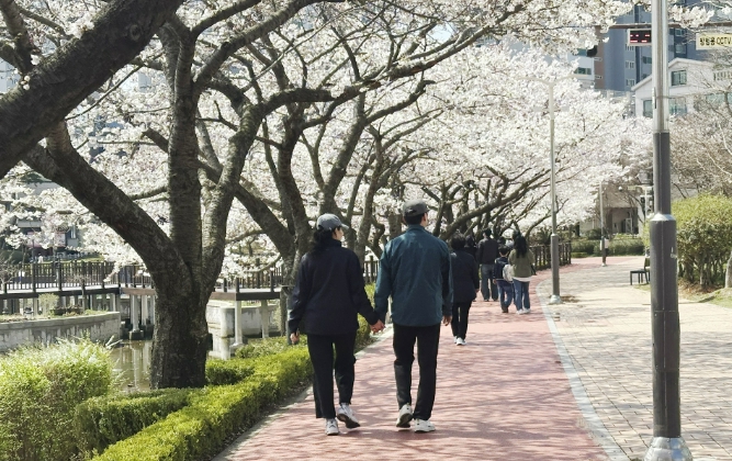 ![]() 중앙호수공원을 걷고 있는 시민 모습 |