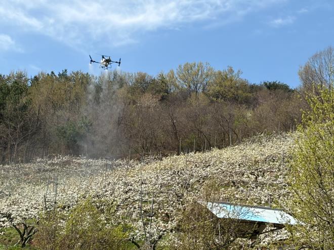 특히 농촌진흥청에서 개발한 기계화 수분용 현탁액 제조 기술을 현대적 드론 살포 시스템에 적용해 정밀하게 진행했다.