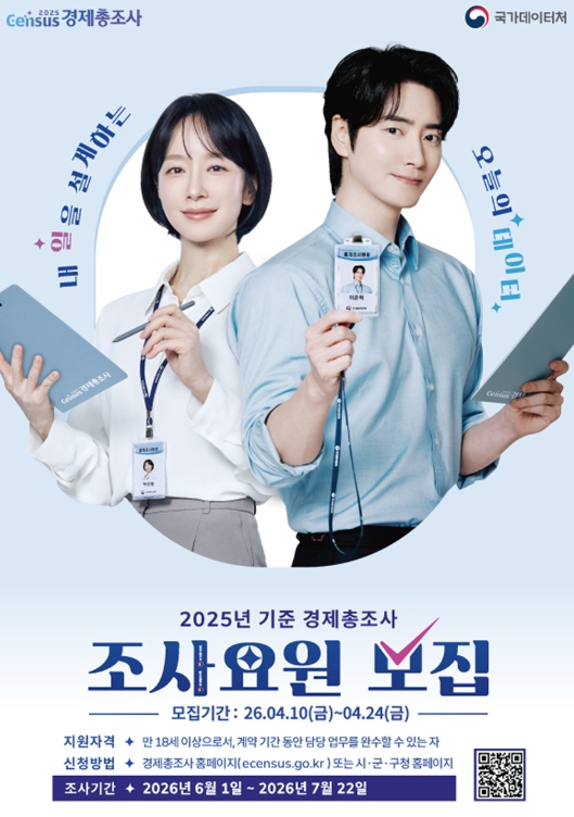 ![]() ‘2025년 기준 경제총조사 조사요원 모집’ 홍보 포스터 |