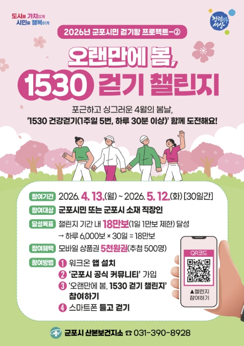 1530 걷기 챌린지는 ‘1주일에 5번, 하루 30분 이상 걷기’를 의미하는 건강걷기 실천운동의 일환이다.