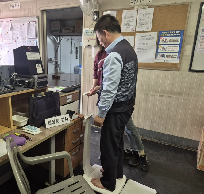![]() ‘직장IN 건강ON’ 프로그램 참여 시민이 체성분 검사를 하고 있다. |