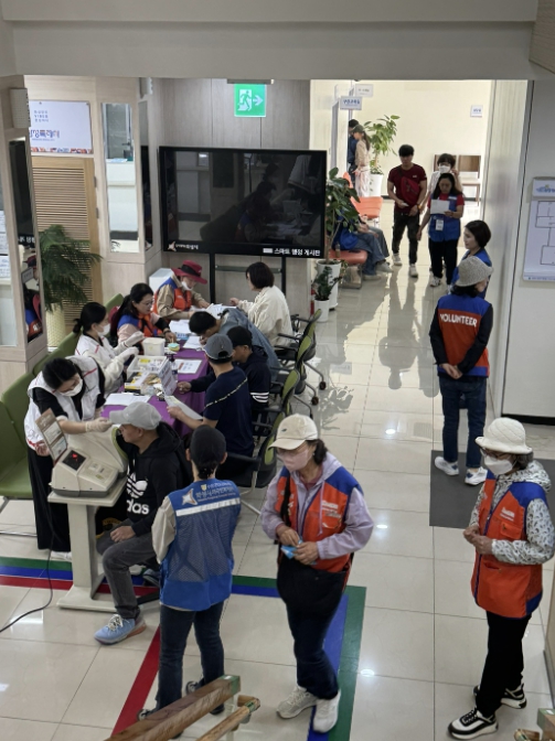 ![]() 화성시자원봉사자와 의료진이 만세구보건소에서 외국인 주민 대상 무료진료를 실시하고 있다 |