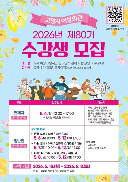 ![]() 고양시여성회관 제80기 정규강좌 수강생 모집 안내문 |
