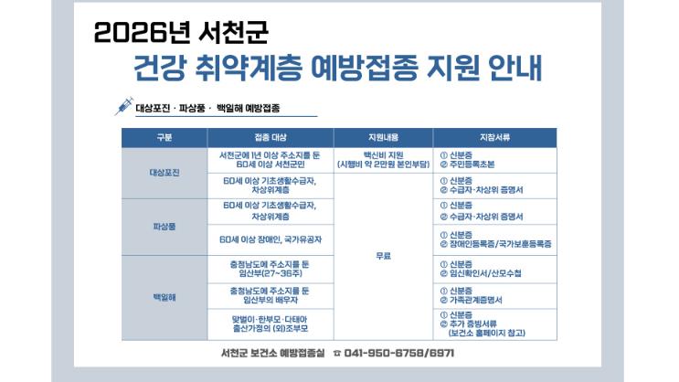 ![]() 서천군, 고령층·임산부 대상 예방접종 지원 확대 |