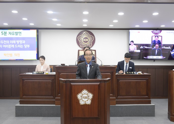 박 의원은 동두천 인구가 8년 사이 9만 6천 명에서 8만 6천 명으로 1만 명 감소한 현실과, 통합재정안정화기금이 2022년 1,867억 원에서 587억 원으로 줄어든 재정 상황, 경기도 일자리재단 이전 사업의 지연 등을 짚으며 위기의식을 환기했다.