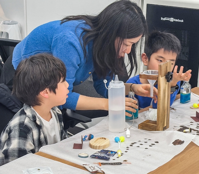 ![]() 도봉구 지역 아동이 ‘메이커스쿨 도봉’ 교육장에서 과학 공예를 체험하고 있다. |