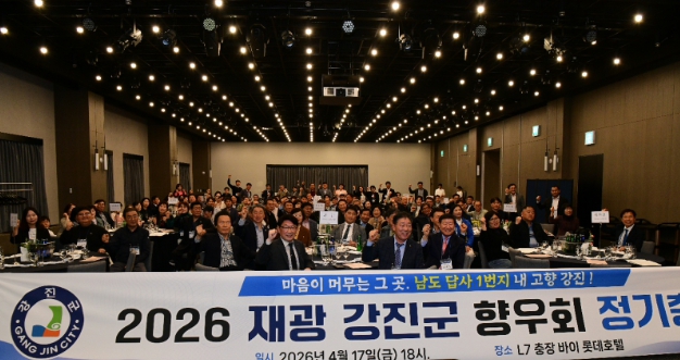 박병준 향우회장은 대회사를 통해 “재광강진군향우회가 향우 간 정을 나누는 친목의 장을 넘어 고향 강진과 출향인을 잇는 든든한 연결고리 역할을 해나가야 한다”며 “향우회의 화합과 단합을 바탕으로 고향 발전에 힘을 보태고, 회원 모두가 자긍심을 갖는 향우회로 더욱 굳건히 서가겠다”고 말했다.