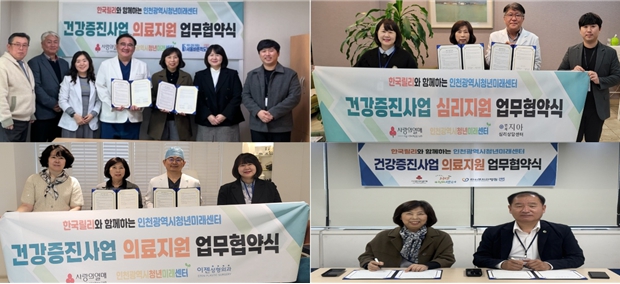 앞서 인천시청년미래센터는 지난 20일 이젠성형외과, 라이브치과병원과와 지난 14, 15일은 각각 서울바른척도병원, 연세지아심리상담센터와 업무 협약했다.