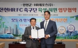 전주시 최준규 기자2025. 11.24[시사토픽뉴스] 충북 진천군은 군청 소회의실에서 HR레포츠 주식회사(대표 신호룡)와 ‘진천 HR FC 축구단 육성 및 지원을 위한 업무협약’을 체결했다고 24일 밝혔다. 이번 협약은 2026년 대한축구협회 K4 리그 참가를 앞두고, 진천 HR FC의 안정적인 운영 기반을 마련하고, 지역 스포츠 발전을 위한 협력 체계를 구축하기 위해 추진됐다. 협약식에는 송기섭 진천군수와 HR레포츠(주) 신호룡 대표, 김화영 진천군 체육회장, 김중기 진천군 축구협회장 등 관계자들이 참석했다. 협약의 주요 내용은 △축구단 운영과 발...