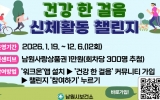 남원시 최준규 기자2026. 01.14[시사토픽뉴스]남원시보건소가 시민들의 일상 속 신체활동을 권장하는 '2026 건강 한 걸음'을 1월 19일부터 본격 시작한다. 신체활동 챌린지는 총 12회에 걸쳐 매월 운영되며 스마트폰을 사용하는 지역 주민이라면 누구나 참여할 수 있는 비대면 건강생활실천 사업이다. 참여를 희망하는 시민은 소지한 스마트폰에 ▲‘워크온’ 앱을 설치하고 ▲남원시 커뮤니티 '건강 한 걸음'에 가입한 뒤 ▲챌린지 ‘참여하기’ 버튼을 누르면 된다. 이번 챌린지 기본 미션은 매월 ‘2주 동안 10만 보 걷기’(1일 최대 1만보 인정)로, 목표를 달성한 참...