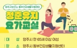 전주시 최준규 기자2026. 03.11[시사토픽뉴스]양주시보건소 동부건강생활지원센터가 중․장년층의 관절염 및 낙상 예방을 위한 맞춤형 요가 프로그램인 ‘청춘유지 요가교실’ 1기 참여자를 모집한다. ‘청춘유지 요가교실’은 만 65세 이상 양주시 여성을 대상으로 하며, 참여 신청은 3월 11일부터 전화 또는 방문을 통해 접수할 수 있다. 1기는 4월 1일부터 5월 27일까지 매주 수․금요일 총 16회 운영되며, 오전 10시부터 11시까지 진행된다. 프로그램은 관절 및 전신 가동성 유지와 낙상 예방을 위한 요가 운동, 세라밴드를 활용한 근력 강화 운동 교육 등으...