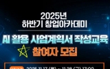 군산시 최준규 기자2025. 11.20[시사토픽뉴스]군산시 청년뜰 창업센터는 28일까지 정부지원사업대비 사업계획서를 준비 중인 군산시 (예비)창업자를 대상으로 ‘2025년 하반기 창업아카데미 인공지능(AI) 활용 사업계획서 작성교육’ 참여자를 모집한다. 이번 교육은 인공지능(AI) 기술을 활용하여 비즈니스 모델 및 아이디어를 발굴·고도화하고, 실무 중심의 역량 강화와 전문 멘토링을 통한 체계적 성장을 지원하기 위해 마련됐다. 총 3일간 진행되는 교육은, 인공지능(AI) 프롬프트 설계부터 사업계획서 작성, 시각적 발표 자료 제작까지 단계별 학습으로 구성된다. ...