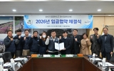 건강 최준규 기자2025. 12.26[시사토픽뉴스]장수군은 군청 2층 회의실에서 전국공공운수노조 전국자치단체공무직본부 장수군지부(지부장 윤동수, 이하 ‘장수군 공무직지부’)와 2025년 임금협약을 체결했다고 26일 밝혔다. 이날 협약식에는 최훈식 장수군수를 비롯한 노사 양측 교섭위원 11명이 참석했으며 협약서 서명을 통해 장수군 공무직지부와 2025년·2026년 임금협약을 확정했다. 이번 협약은 올해 7월부터 노사 간 상견례, 실무교섭 등을 거쳐 추진됐으며 상호 신뢰와 존중을 바탕으로 합리적인 합의를 도출한 점에서 의미가 크다. 주요 협약 내용은 기말상여...