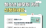 김제시 최준규 기자2025. 12.26[시사토픽뉴스]봉화군은 지역 청소년의 건강한 성장 발달과 복지 증진을 위해 2026년 1월 2일부터 봉화군 청소년 바우처 카드 신청을 받는다. 봉화군 청소년 바우처는 관내 주소지를 둔 9세~12세는 연12만원, 13세~18세는 연 24만원의 포인트를 지급하는 제도로 지역경제 활성화에도 기여할 것으로 기대된다. 바우처를 지원받고자 하는 청소년, 보호자 또는 대리인이 신청서 및 관련 서류를 주소지 읍·면 사무소 복지팀에 접수하면 된다. 포인트는 지역 내에 등록된 가맹점에서만 사용이 가능하며 사용기한은 매년 12월 20일까지...