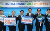익산시 최준규 기자2025. 12.24[시사토픽뉴스](재)2026여수세계섬박람회조직위원회는 지난 24일, 수협중앙회와 섬박람회 성공개최를 위한 1억 원 규모의 입장권 구매약정을 체결했다고 밝혔다. 이번 약정은 해양수산 분야를 대표하는 수협중앙회가 섬박람회 취지에 공감하며 체결됐다. 앞서 지난 11일 여수 지역 해양수산 분야 11개 단체가 입장권을 구매한 데 이어 전국 단위로 섬박람회 지지와 참여가 확대되고 있다. 노동진 수협중앙회 회장은 “섬박람회는 대한민국 해양‧섬의 가치와 미래를 알리는 뜻깊은 행사다”며, “수협중앙회도 해양수산을 대표하는 기관으로서 섬박람회...
