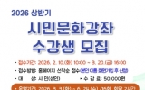 광주광역시 최준규 기자2026. 02.10[시사토픽뉴스]광주광역시교육청중앙도서관은 오는 3월 3일부터 6월 24일까지 도서관 배움터실 등에서 ‘2026년도 상반기 시민문화강좌’를 운영한다. 이번 강좌는 시민들에게 자기계발의 기회를 제공해 일상 속 배움의 즐거움을 누릴 수 있도록 지원하기 위해 마련됐다. 강좌는 본관과 분관(최상준도서관)에서 나눠 진행된다. 광주중앙도서관 본관은 ▲AI를 활용한 자서전 쓰기 ▲영어회화 ▲일어독해 ▲중국어 회화 등 4개 과정을 운영한다. 분관 최상준도서관은 ▲패브릭 아트 ▲연필 스케치 ▲서예 ▲영어회화 등 4개 과정을 선보인다. ...