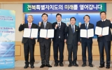 순천 최준규 기자2026. 02.09[시사토픽뉴스]전북특별자치도가 9일 도청에서 새만금개발청, 한국전력공사, 한국수력원자력㈜와 함께 '새만금 수상태양광(1단계) 발전사업'의 적기 구축을 위한 상호 협력 업무협약(MOU)을 체결했다. 협약식에는 김관영 전북자치도지사와 김성환 기후에너지환경부 장관, 안호영 기후에너지환경노동위원회 위원장, 김의겸 새만금개발청장, 김동철 한국전력공사 사장, 전대욱 한국수력원자력㈜ 사장 직무대행이 참석했다. 새만금 수상태양광 1단계 사업은 약 13.5㎢ 수역에 1.2GW 규모의 태양광 발전시설을 설치하는 총사업비 3조 원 규모의 대형 프로...