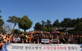 전라남도 최준규 기자2025. 11.11[시사토픽뉴스]경산소방서는 10일 경산시 사동 산천재 일원에서 ‘2025년 산불진화대 발대식’을 개최하고, 본격적인 산불 대비 태세에 돌입했다. 이날 행사에는 한창완 경산소방서장을 비롯해 119산불신속대응팀, 산불지원팀·기동팀 등 산불진화대원 104명이 참석했으며, 다가오는 겨울철과 봄철 산불 예방 및 초동 대응 강화를 위한 결의를 다졌다. 발대식에서는 산불예방 교육, 진화장비 점검, 안전수칙 교육 등이 진행됐으며, 산불 발생 시 신속한 출동과 효율적인 현장지휘체계 확립을 다짐하는 자리로 마련됐다. 경산소방서는 이번 발대식을 ...