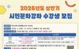 광주광역시 최준규 기자2026. 02.09[시사토픽뉴스]광주시교육청금호평생교육관은 오는 3~6월 ‘2026년 상반기 시민문화강좌’를 운영한다. 이번 시민문화강좌는 시민의 학습 수요를 반영한 배움의 장을 제공하고 지역 내 평생학습 문화를 확산하기 위해 마련됐다. 강좌는 ▲스마트폰 활용 ▲영어회화 ▲컴퓨터 기초 등 인문교양 11개, ▲바이올린 ▲줌바댄스 ▲요가 ▲프랑스자수 등 문화예술 19개 등 2개 분야 30개로 구성됐다. 운영 일정은 오는 3월 3일부터 6월 24일까지 주 1회 2시간씩 총 16회에 걸쳐 본관 평생학습실에서 진행된다. 수강신청은 시민 누구나 가능하며...