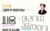 광양 최준규 기자2025. 11.07[시사토픽뉴스]광양용강도서관은 오는 11월 23일 오후 2시, 마로극장에서 초등학교 1~3학년 어린이를 대상으로 그림책 『싸움』의 저자 민아원 작가와의 만남을 운영한다고 밝혔다. ‘싸움: 여러 가지 감정 이야기’를 주제로 한 이번 작가와의 만남은 어린이들의 감수성과 사회성을 높이고, 건강한 자아와 관계 형성에 도움을 주기 위해 마련됐다. 함께 읽을 도서 『싸움』은 뾰족뾰족한 마음이 만나 별이 되는 이야기를 담은 그림책으로, 갈등 속에서도 서로의 감정을 이해하고 함께 성장해 가는 모습을 유쾌하면서도 따뜻하게 그려냈다. 참가 인원...