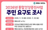 여수 최준규 기자2025. 11.07[시사토픽뉴스]통영시는 2026년 통합건강증진사업의 효과적이고 실효성 있는 추진을 위해 오는 10일(월)부터 30일(일)까지 3주간 ‘통합건강증진사업 주민요구도 조사’를 실시한다. 이번 조사는 지역 주민이 직접 체감하는 건강문제와 요구를 파악해 사업의 우선순위를 정하고, 2026년 통합건강증진사업의 방향 수립에 참고자료로 활용될 예정이다. 조사대상은 통영시민 전체로, 온라인 및 보건소 방문 민원인을 대상으로 병행해 진행된다. 설문 항목은 총 18개로 구성되, △보건소 이용현황 △보건소 건강증진사업 참여도 △중점 추진해야 ...